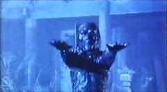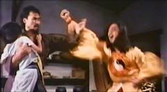 A impressão que tive é que o Clã Yuen gastou quase toda a criatividade nos filmes anteriores e sobrou poucas boas idéias pra se usar aqui. Claro que tem algumas idéias interessantes aqui e acolá, principalmente nas confusões em que Leung se mete ao tentar combater o kyonshi sozinho, mas no geral esse filme carece um pouco daquelas desesperadas e hilariantes seqüências de perseguição que caracterizam o gênero. A graça desse tipo de filme é quando as pessoas comuns precisam fugir de kyonshis e o sacerdote taoísta (quase sempre interpretado pelo saudoso Lam Ching Ying) aparece com um feitiço novo pra combatê-los. Mas no caso desse filme, tanto o exterminador quanto o sacerdote são tão medrosos e trapalhões, que as cenas onde encaram os kyonshis se resumem a gritarias e correrias pouco inspiradas.