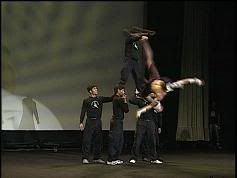 ...dá cambalhotas entre vidraças, anda sobre os ombros dos perseguidores...