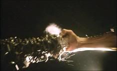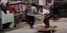 Quando KILL BILL Vol.1 (03) surgiu nos cinemas muita gente ficou impressionada com a luta entre a Noiva (Uma Thurman) e Go Go Yubari (Chiaki Kuriyama), especialmente pelo modo que Go Go manejava aquela corrente com a bola na ponta. Pois 19 anos antes Donnie Yen fez exatamente os mesmos movimentos (e muito mais) em Drunken Tai Chi, e em DUAS CENAS!!! Primeiro na seqüência do braço-de-ferro com pincel, onde ele usa o próprio pincel pra dar uma lição num sujeito grandalhão que não gostou de perder.