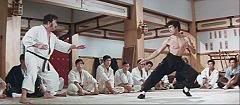 Voltando ao Fist Of Fury, depois de Bruce surrar todos os alunos, não resta ao mestre japonês outra opção senão encarar a luta. Visivelmente amedrontado, o mestre se aproxima devagarinho de Bruce, que está de braços cruzados com uma provocativa cara de indiferença (afinal, por quê ele temeria um mestre velho e gordo como aquele?) e o ataca. Bruce soca o mestre gordo sem dó!