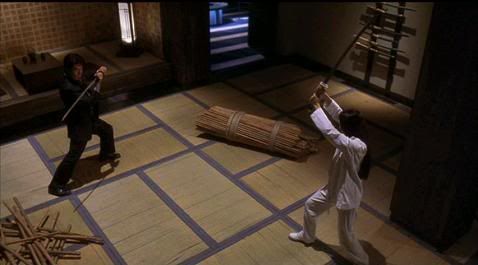 Depois de detonar com praticamente todos os capangas do vilão principal, Vicky Zhao chega a uma sala com motivos japoneses onde um dos vilões , interpretado por Kurata, a espera empunhando um kataná e arremessa uns bambus. Sem mais balas na pistola, Vicky deixa-a de lado e trata de pegar um kataná também.