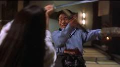 Mais uma bela seqüência de choques de espadas e Kurata encosta Karen na parede, ficando ambos imobilizados. De repente, Kurata surpreende Karen tirando da parte de trás da cintura uma espada mais curta e fere-lhe o abdômem.