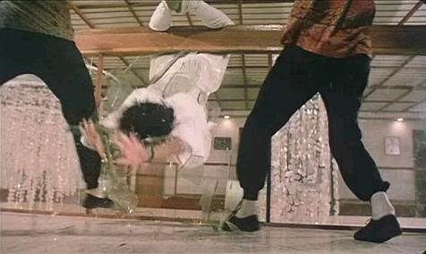 Falando em Corey Yuen, não posso deixar de comentar um fato que achei muito interessante. Numa seqüência antes da batalha contra Yasuaki Kurata, tem uma luta entre Karen Mok e Ben Lam. O desfecho da luta é quando Karen atravessa uma vidraça, agarra a perna de Lam e o joga prédio abaixo. Uma cena impressionante!