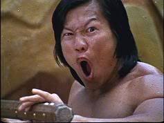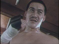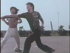 Falando em Bolo, não sei por quê, mas ele aparece quase sempre com um cigarro apagado no canto da boca... Outra cara conhecida aqui é do kickboxer Tetsu Sumi, que também aparece no excelente Heróis Do Oriente (Heroes Of The East) como mestre de caratê, ao lado do próprio Kurata, lutando contra Gordon Liu.