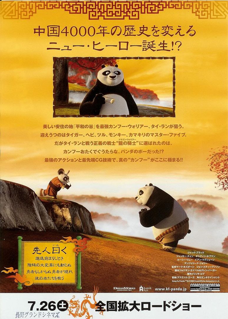 Provavelmente todo mundo já ouviu falar dessa novíssima animação da DreamWorks, especialmente porque um dos personagens (um macaco mestre do estilo do... MACACO!!! Valeu pela correção, Jonathan!) será dublado por ninguém menos do que Jackie Chan. Mas todo mundo também deve ter imaginado que essa seria apenas mais uma bobeira americana feita para aproveitar a atual febre dos filmes de kung fu. Confesso que eu também pensava assim até ver o trailer ontem, quando fui ao cinema assistir um drama pra acompanhar a minha mãe.